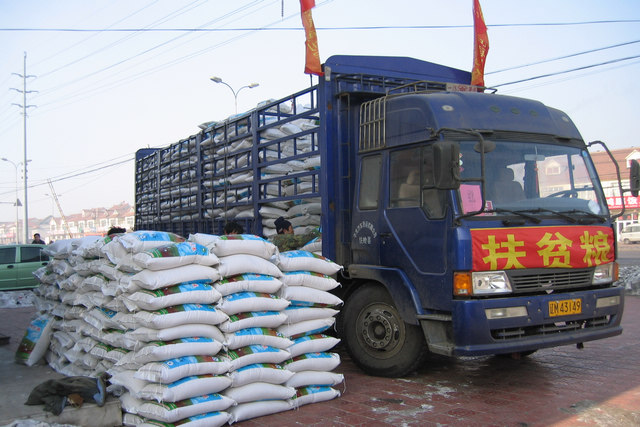 ![]() 滿載捐贈物資的貨車 |